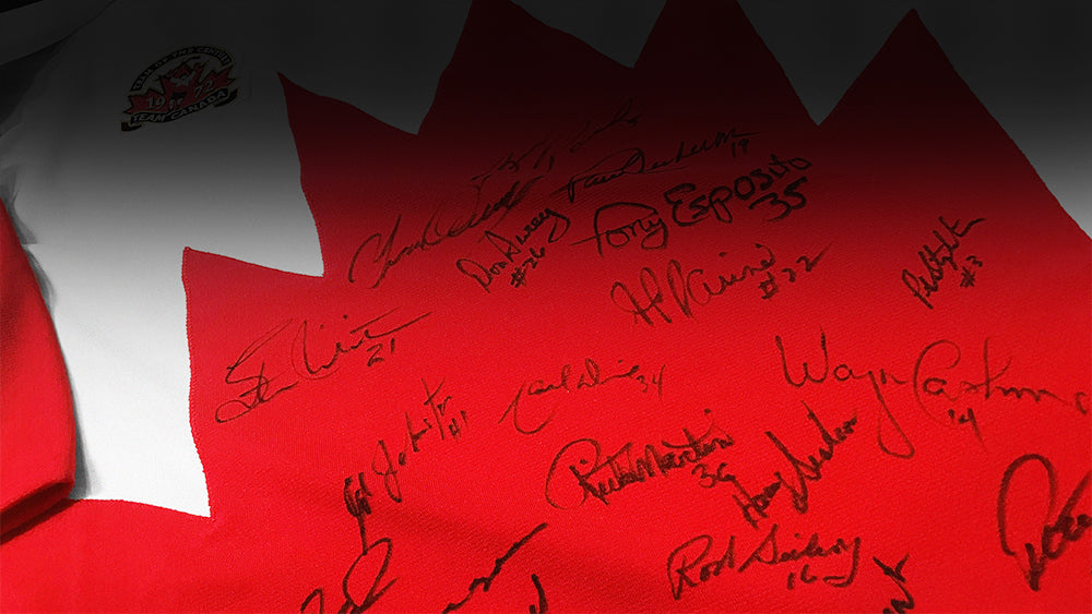 This limited edition Team Canada 1972 inspired watch by The Bradford Exchange pays homage to the 1972 Summit Series. It is accompanied by a 25th Anniversary 1972 Summit Series Card Set. The watch is individually engraved and numbered out of 4,999, and comes with a Certificate of Authenticity from The Bradford Exchange.